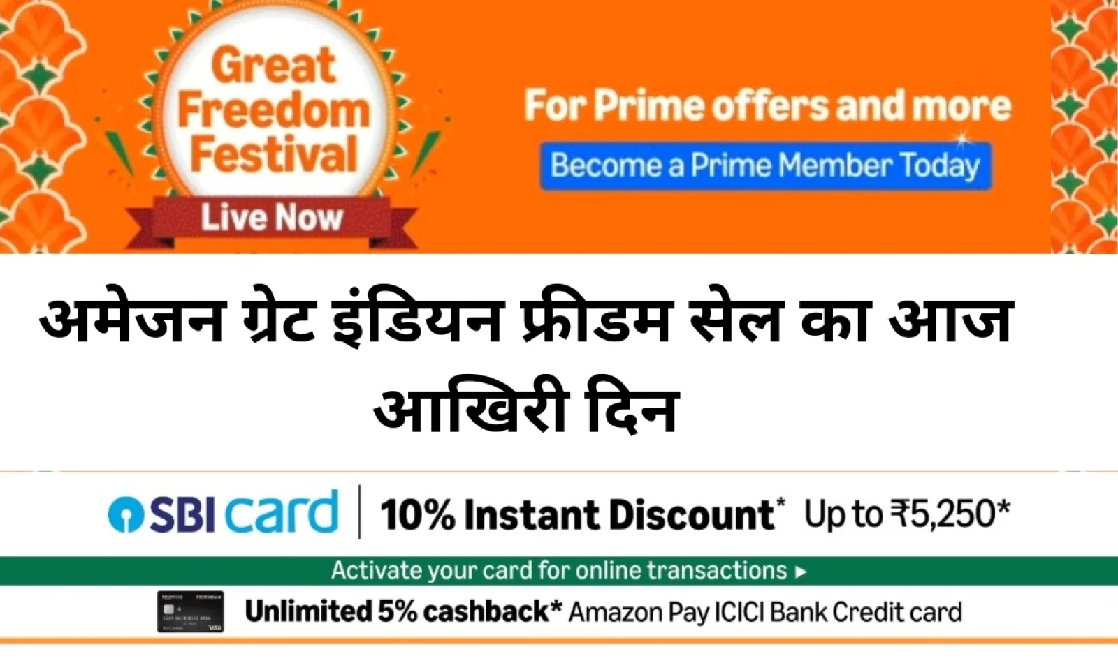 आपको Amazon सेल में काफी सारे बैंक ऑफर्स भी देखने को मिलेंगे अगर आपके पास एसबीआई बैंक क्रेडिट कार्ड है तो आपको 10% तक इंस्टेंट डिस्काउंट देखने को मिलेगा।