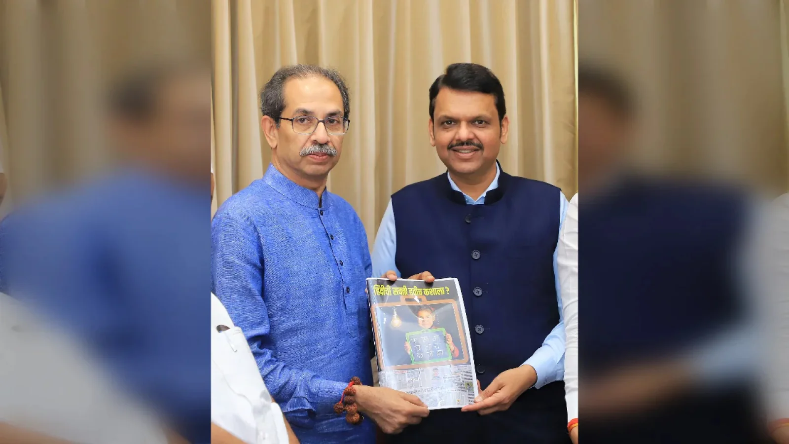 आज विधानभवन येथे पक्षप्रमुख मा. श्री. उद्धवसाहेब ठाकरे ह्यांनी राज्यभरातील विविध संपादकांनी हिंदीसक्तीविरोधात लिहिलेल्या लेखांचे संकलित ‘हिंदी हवी कशाला?’ पुस्तक मुख्यमंत्री देवेंद्र फडणवीस आणि सभापती राम शिंदे ह्यांना भेट दिले. ह्यावेळी युवासेनाप्रमुख शिवसेना नेते आमदार आदित्य… pic.twitter.com/JFUCetP3bN — ShivSena - शिवसेना Uddhav Balasaheb Thackeray (@ShivSenaUBT_) July 17, 2025
